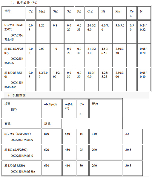超級(jí)雙相不銹鋼型-標(biāo)準(zhǔn)牌號(hào):UNS S32750(25Cr-7Ni-3.7Mo-0.3N)
